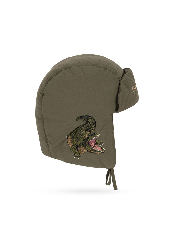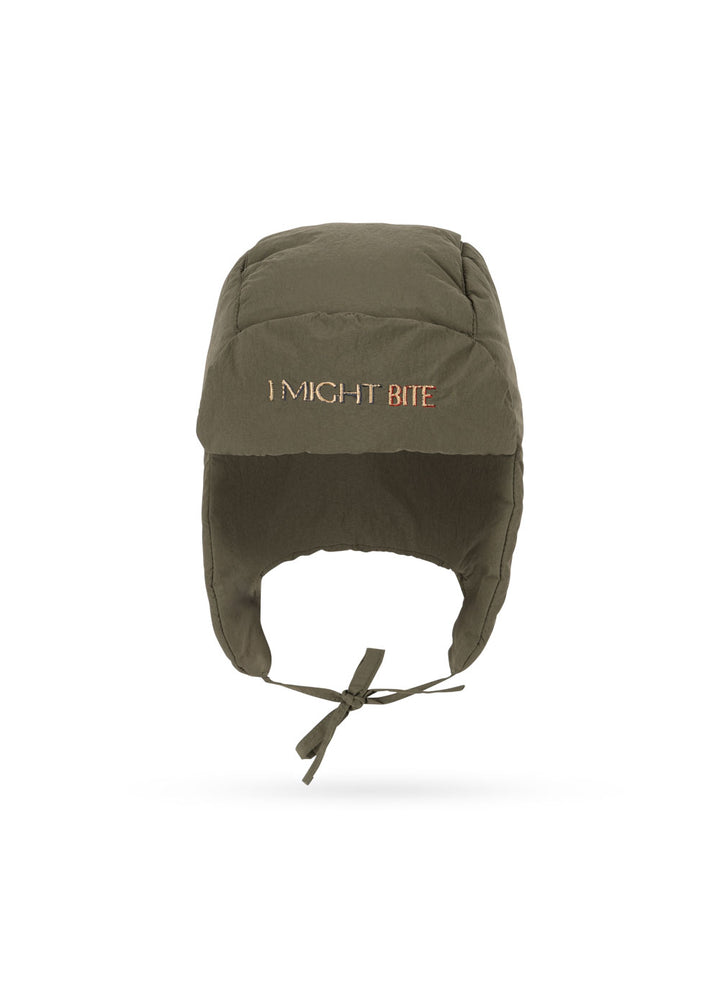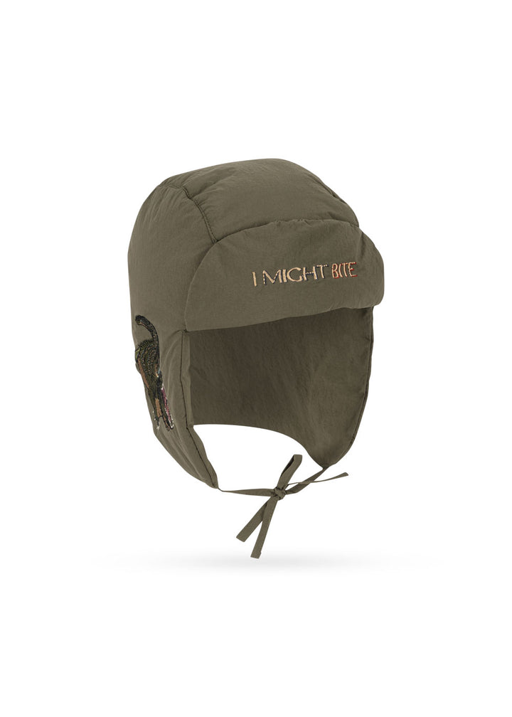 Soft, padded hat that ties under the chin. Features a comfy inside fleece lining. Made from: Shell fabric: 100% nylon. Lining: 100% polyester fleece. Padding: 100% polyester. Technical details: Water-repellent, BIONIC FINISH*ECO, Wind-resistant. This product is OEKO-TEX® STANDARD 100, class 1 certified by DTI Tekstil, License Number: DTI 2276-361. Not allowed for sale in the US/Canada..