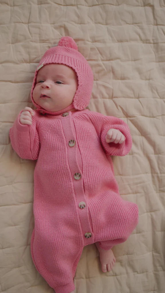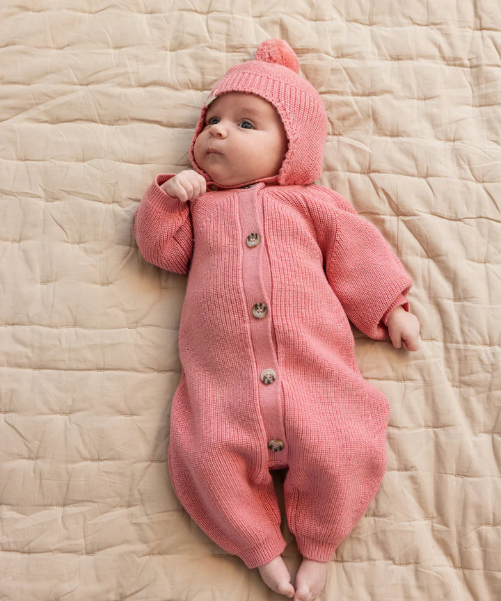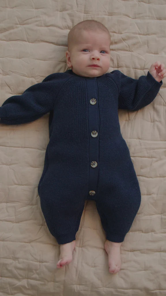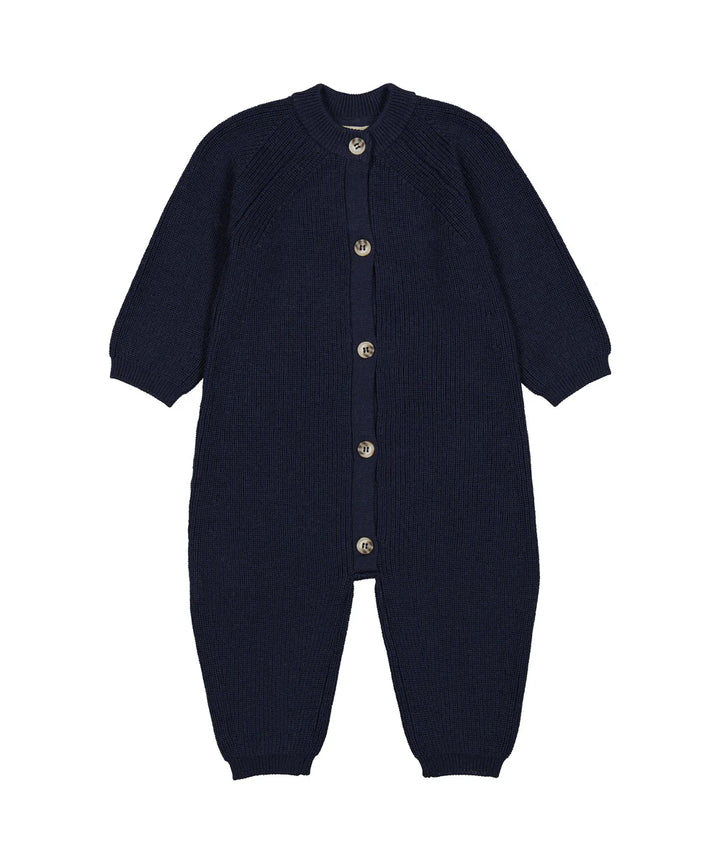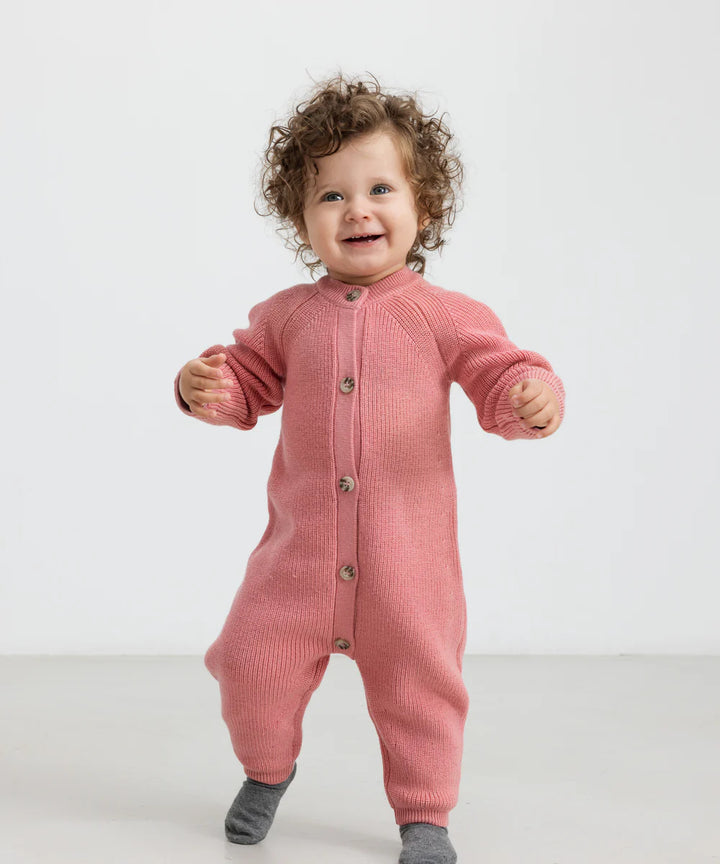 Knitted jumpsuit, perfect for the cooler days. The jumpsuit has long sleeves and legs with ribbed edges and raglan sleeves that ensure a good and comfortable fit. The jumpsuit closes with buttons at the front, making it easy to take on and off. The jumpsuit is both soft, warm and perfect for the colder days.